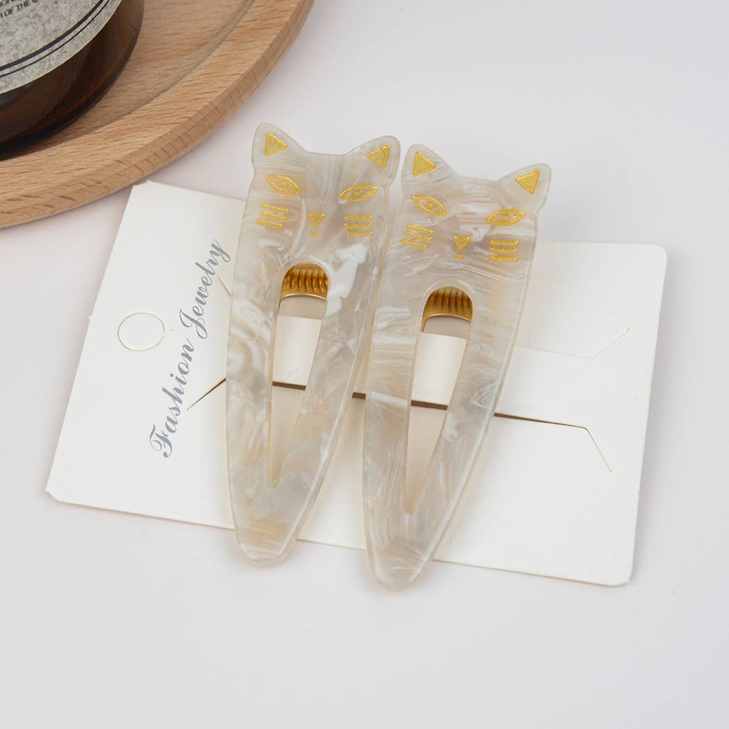 Cat Acetate Hair Clips Set Of 2 - Gray/White $ 11.00 Default Title Add to Cart This item is a recurring or deferred purchase. By continuing, I agree to the cancellation policy and authorize you to charge my payment method at the prices, frequency and dates listed on this page until my order is fulfilled or I cancel, if permitted. Please fill in the form below if you'd like to be notified when it becomes available. Your Email Send This site is protected by hCaptcha and the hCaptcha Privacy Policy and Terms of Service apply. Made from high-quality acetate obtained from eucalyptus. Size: 2.75'' L x 0.86'' H