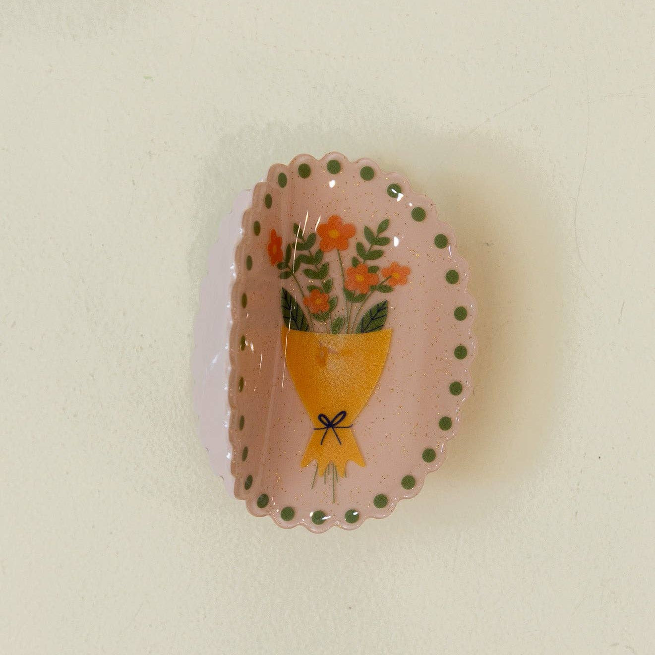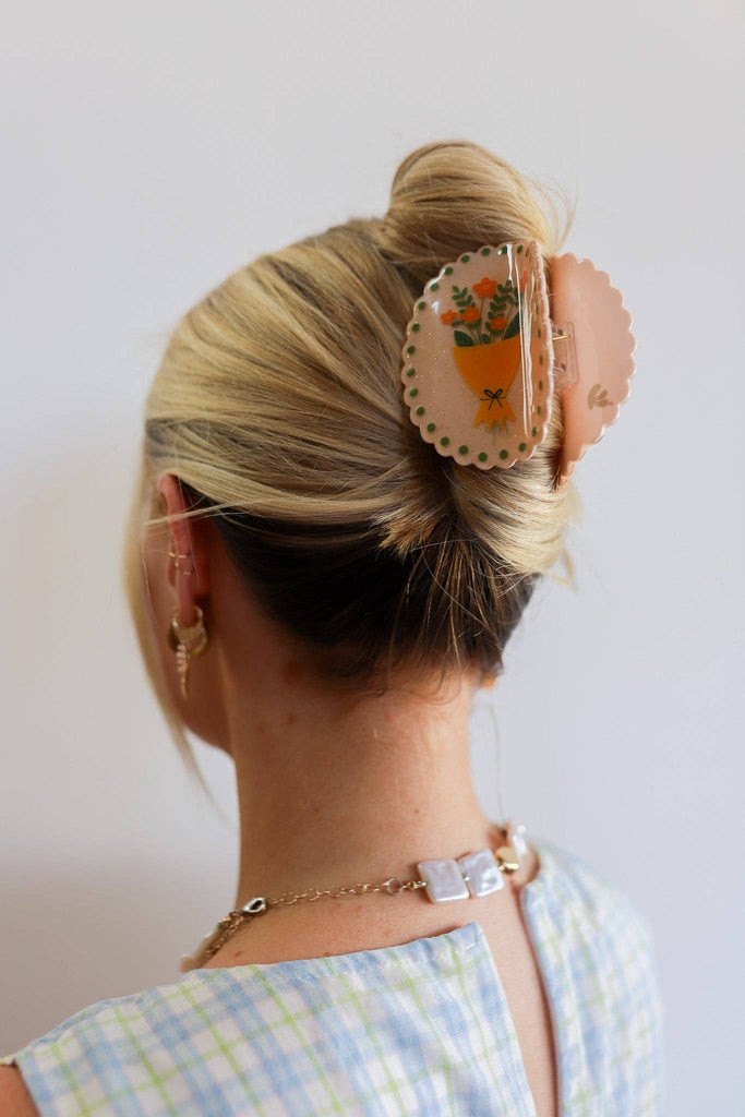 Meet the Scalloped Frame Claw Collection — the clips that do way more than hold your hair up. Each playful scalloped edge is like a little crown for your messy bun or power pony, complete with an extra dose of personality. Tan + Bouquet of Flowers – Soft, romantic, and effortlessly put together (even if your hair isn’t). The perfect neutral with a little floral flourish. Clip in some character. Collect them all. Because your hair deserves accessories as extra as you