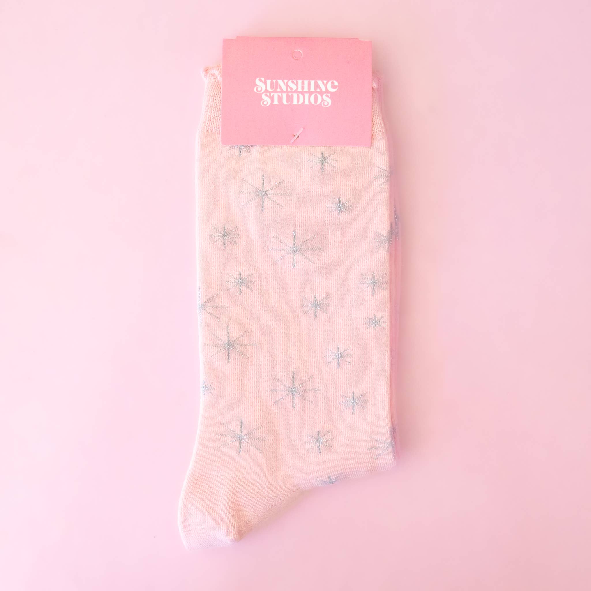 Add a pop of fun to your outfit with these Star Crew Socks in baby pink. Featuring a playful star pattern, they bring cheerful charm to your everyday look while keeping your feet cozy and comfy all day long. Perfect for brightening up any casual ensemble! ·