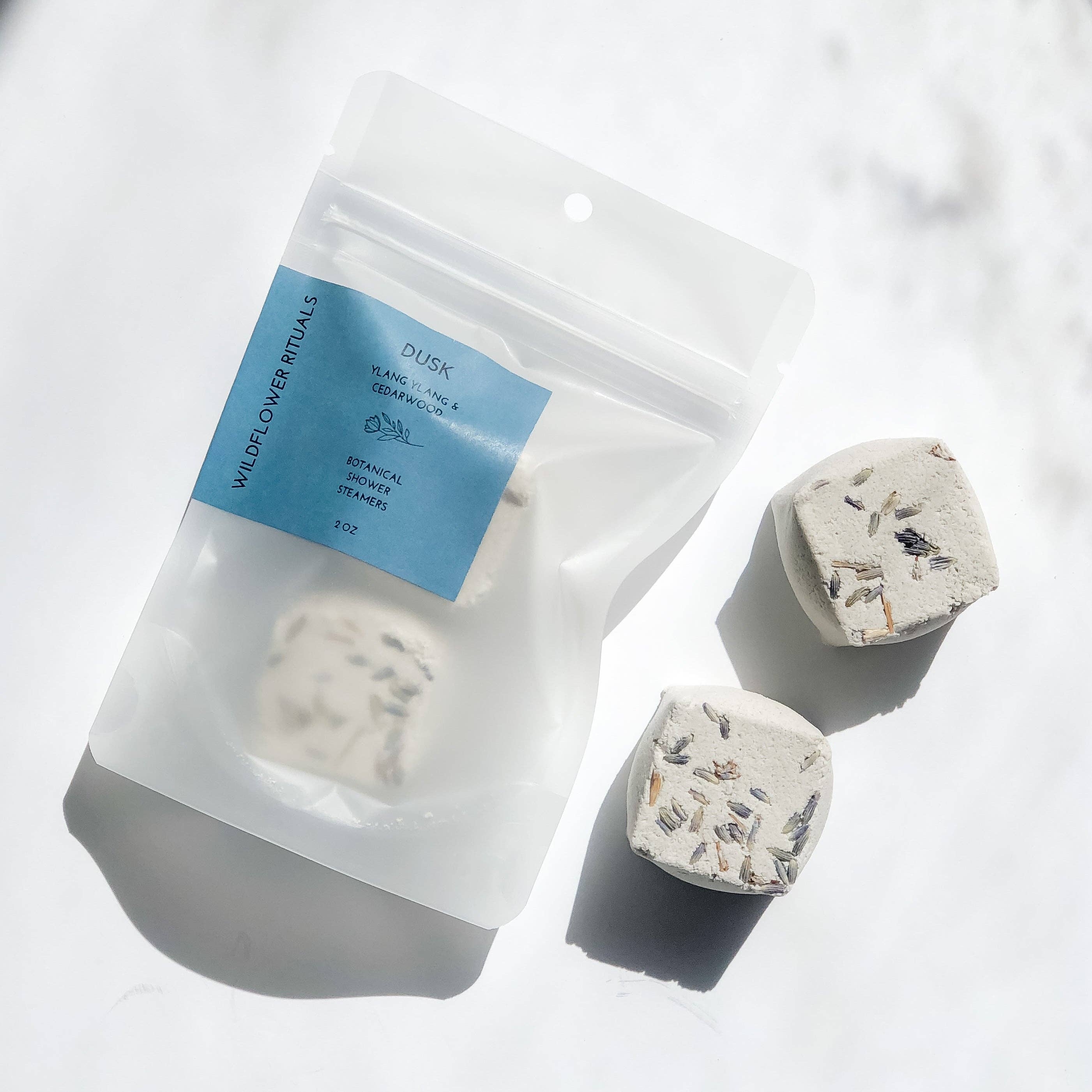 Transform your shower experience with the Dusk Botanical Shower Steamer! Simply place in the shower and let the scents of calming ylang ylang and soothing cedarwood envelop you. Using natural ingredients, this steamer will leave you refreshed and rejuvenated.