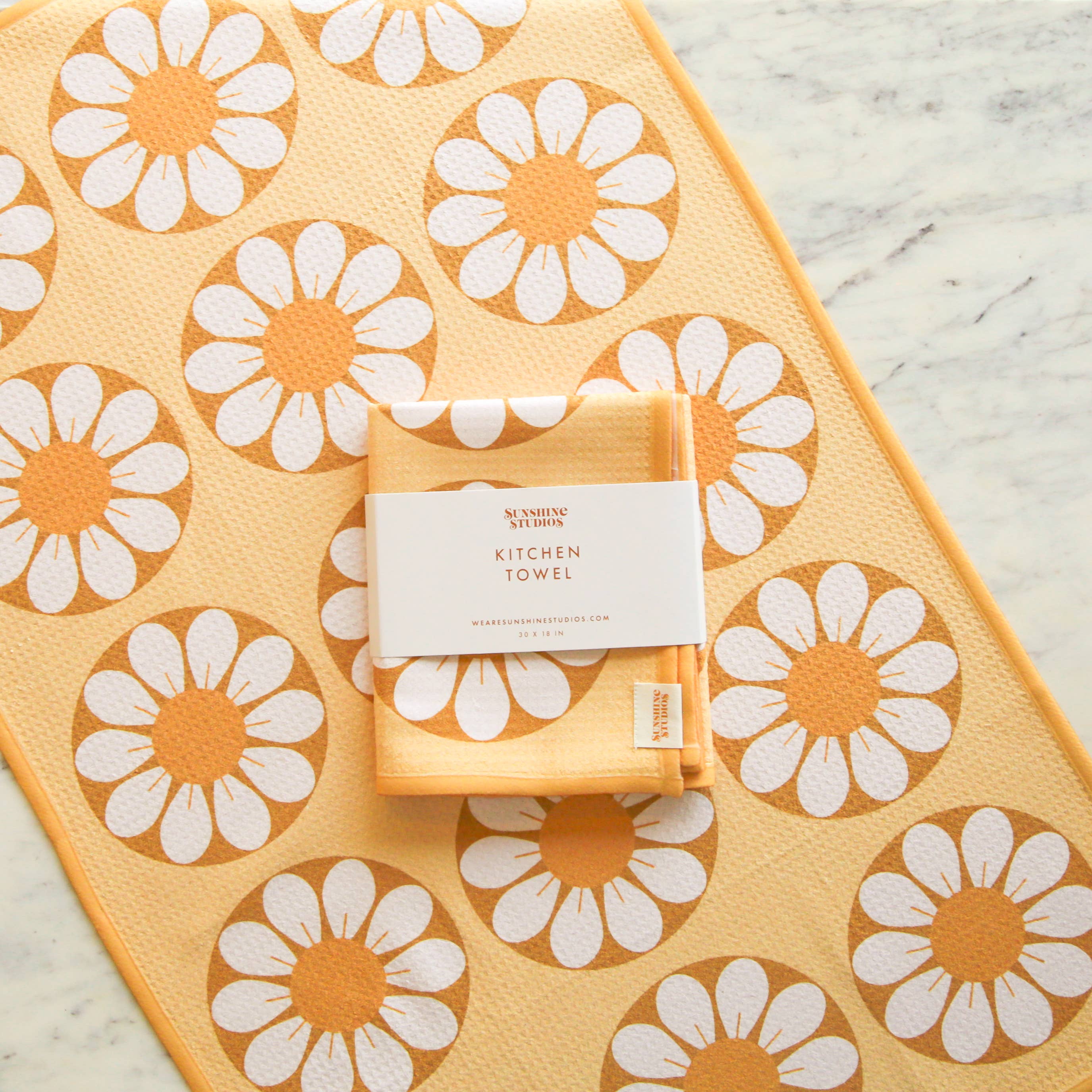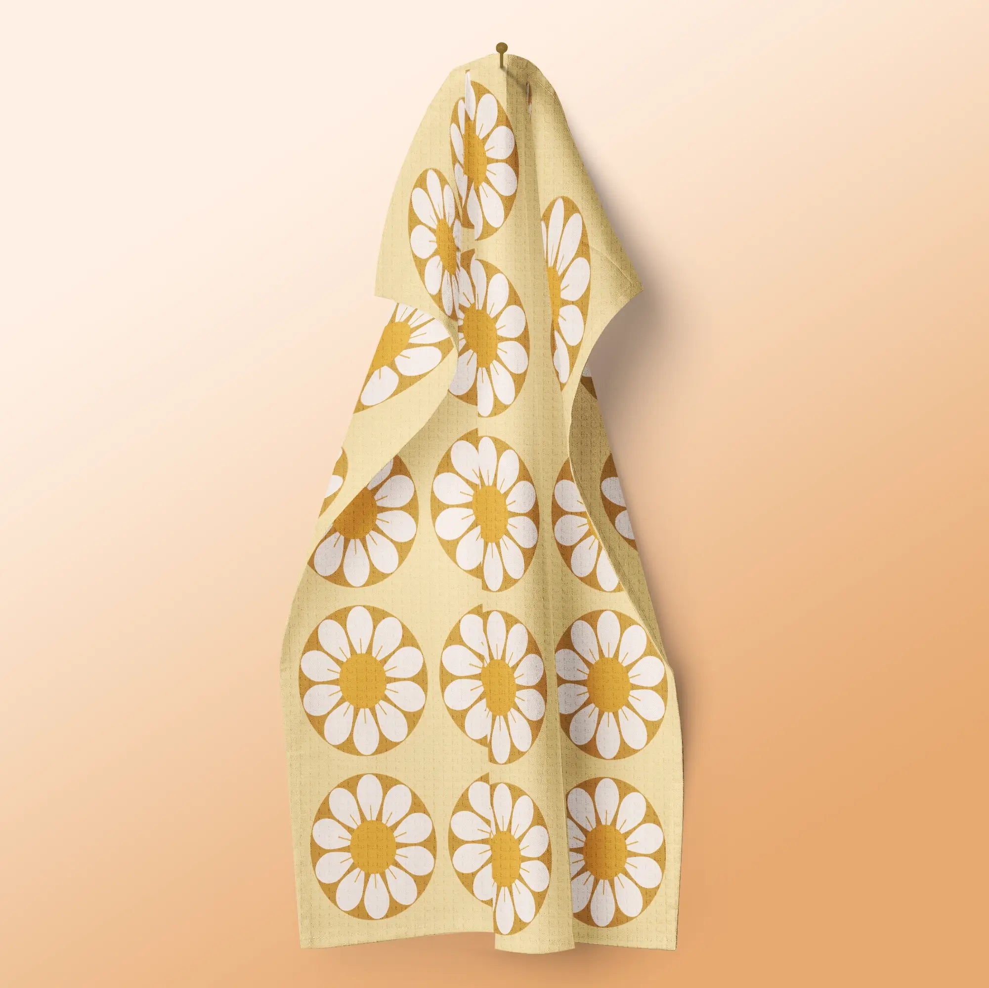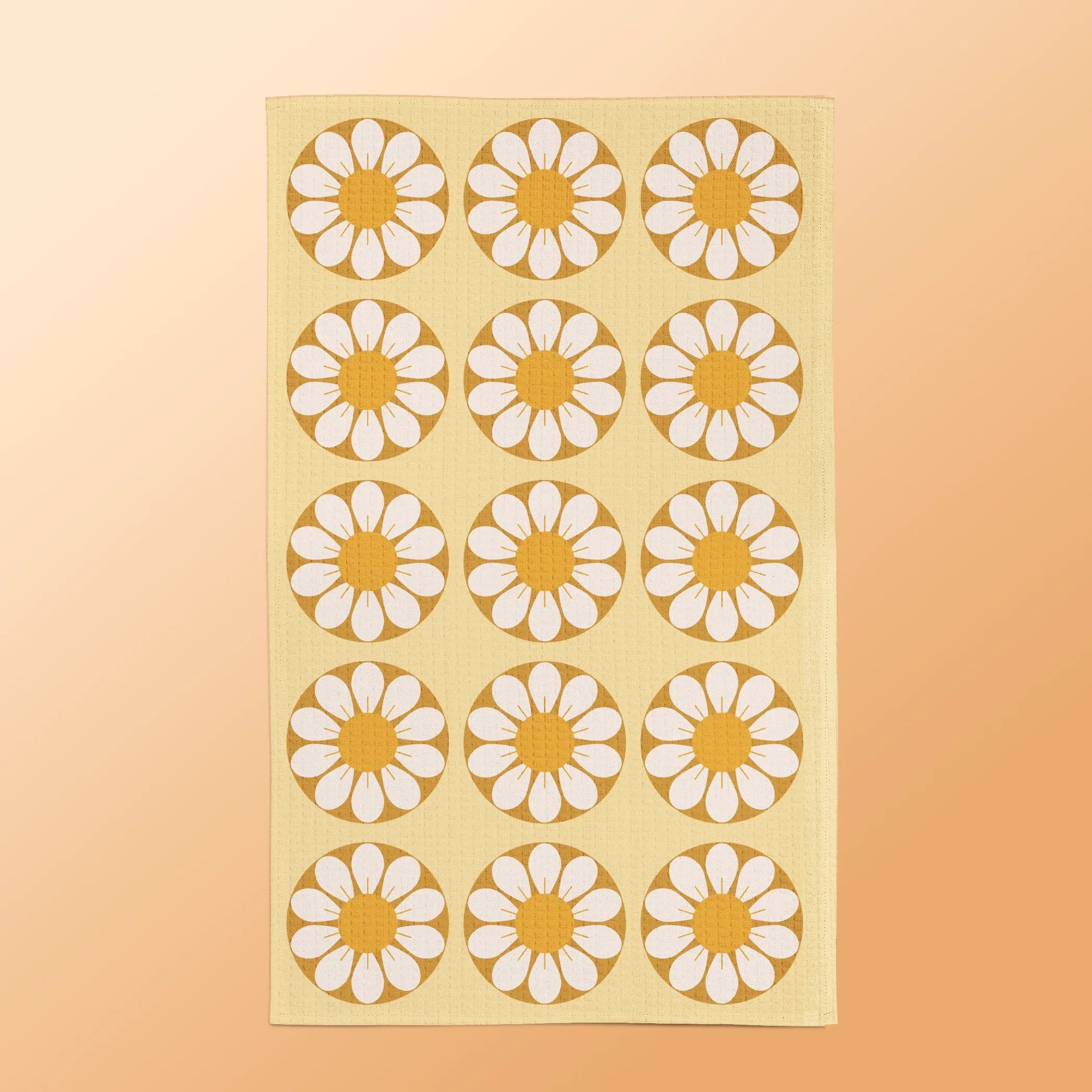 Revamp your kitchen decor with our new Retro Flower Kitchen Towel. It's the perfect way to add a splash of fun to your space without any of the boring home decor. The subtle waffle weave ensures superior absorbency and cleaning. Plus, made from 7 recycled water bottles, you can feel good knowing it's eco-friendly too!