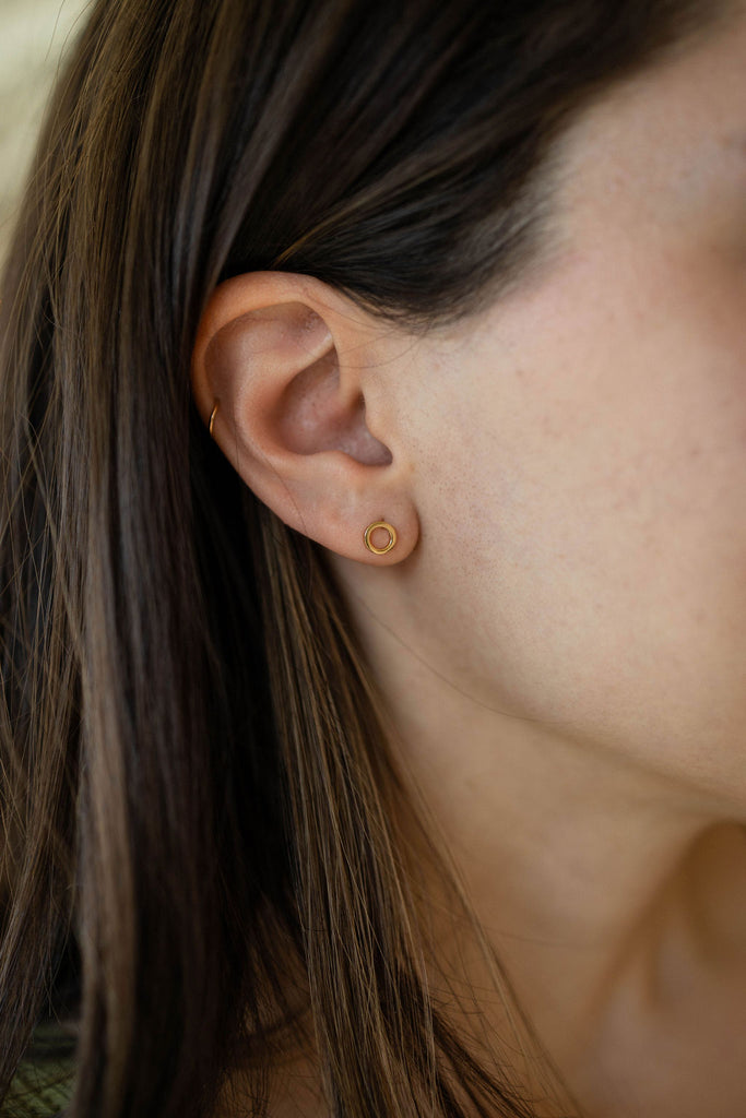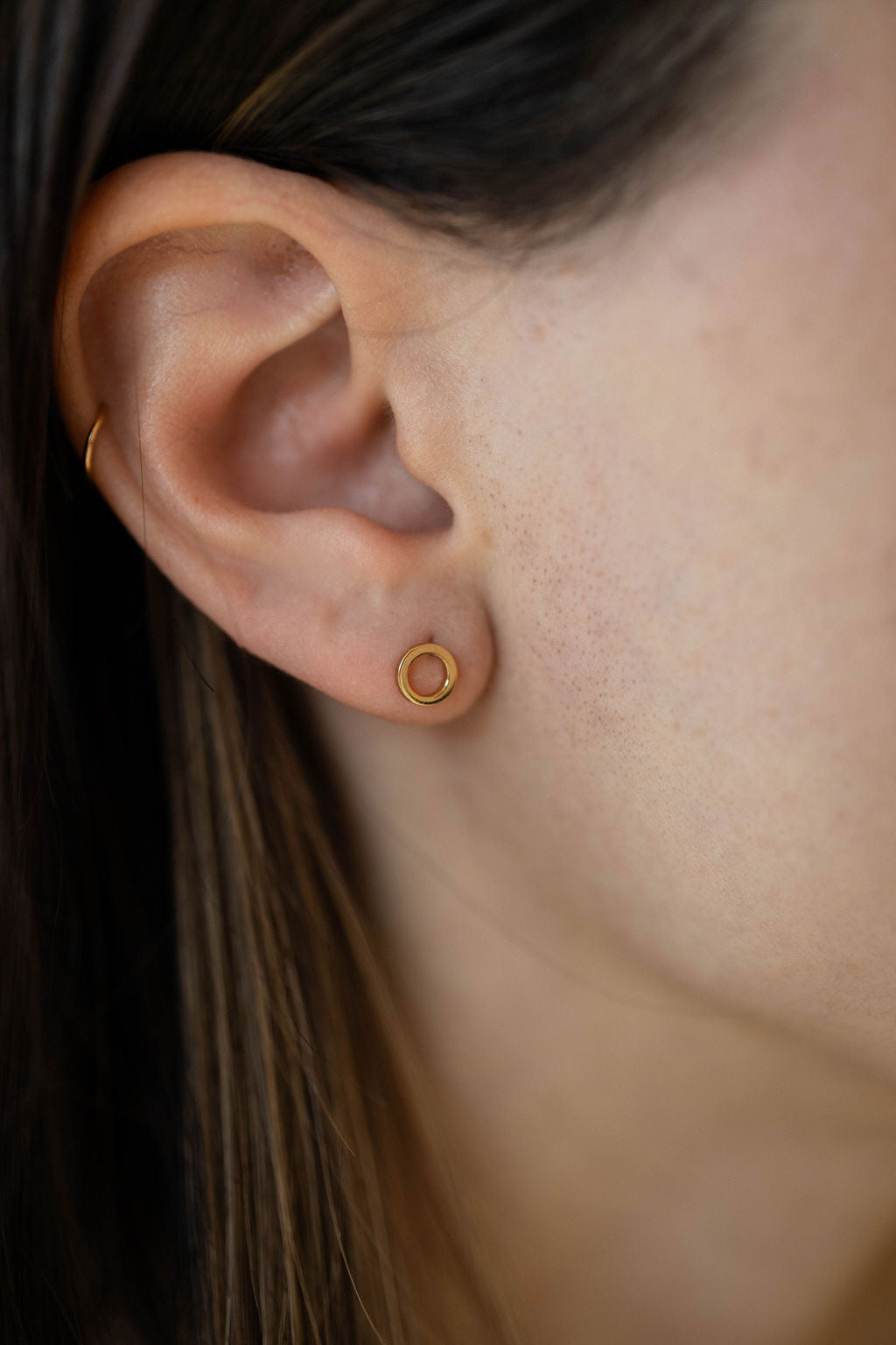 Put the perfect finishing touch to your look with these classic open-circle stud earrings in gold. Make them your go-to for daily wear.