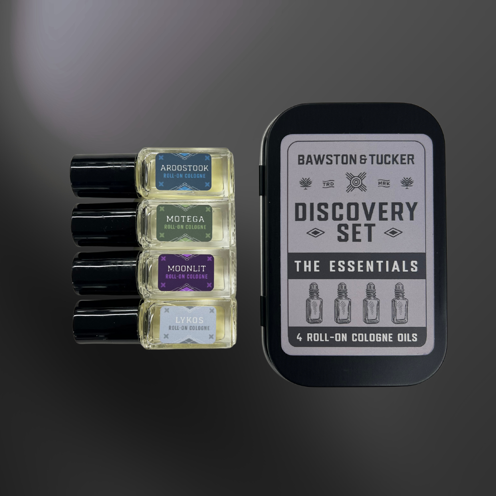 The Essentials Discovery Set is the ideal introduction to Bawston & Tucker’s handcrafted fragrances for men. This sampler includes four of our best-selling roll-on colognes, giving customers a chance to experience the quality and story of our brand before committing to full sizes.