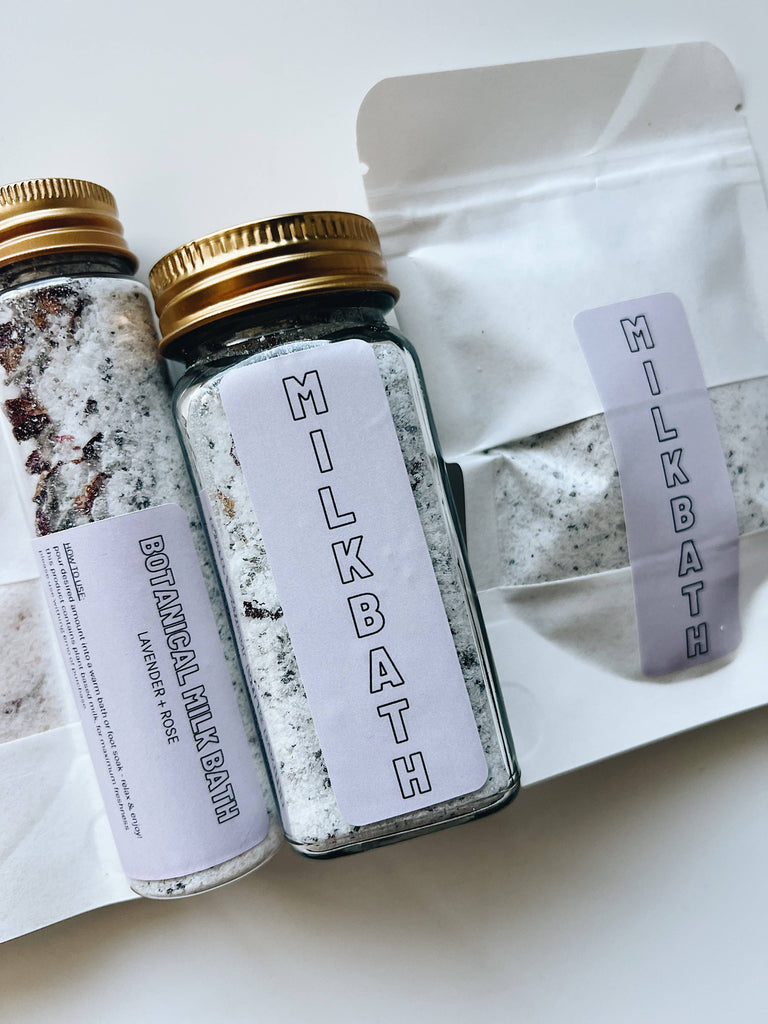 Transform your bath into a luxurious escape with this delightful milk bath blend. Lavender and rose petals dance with Himalayan rock salt and creamy coconut milk, creating a soothing soak that softens skin while calming the senses. Infused with dried botanicals and a carefully crafted fragrance and essential oil blend, this 3.5oz tube brings spa-quality relaxation straight to your tub. Pure indulgence in every soak.