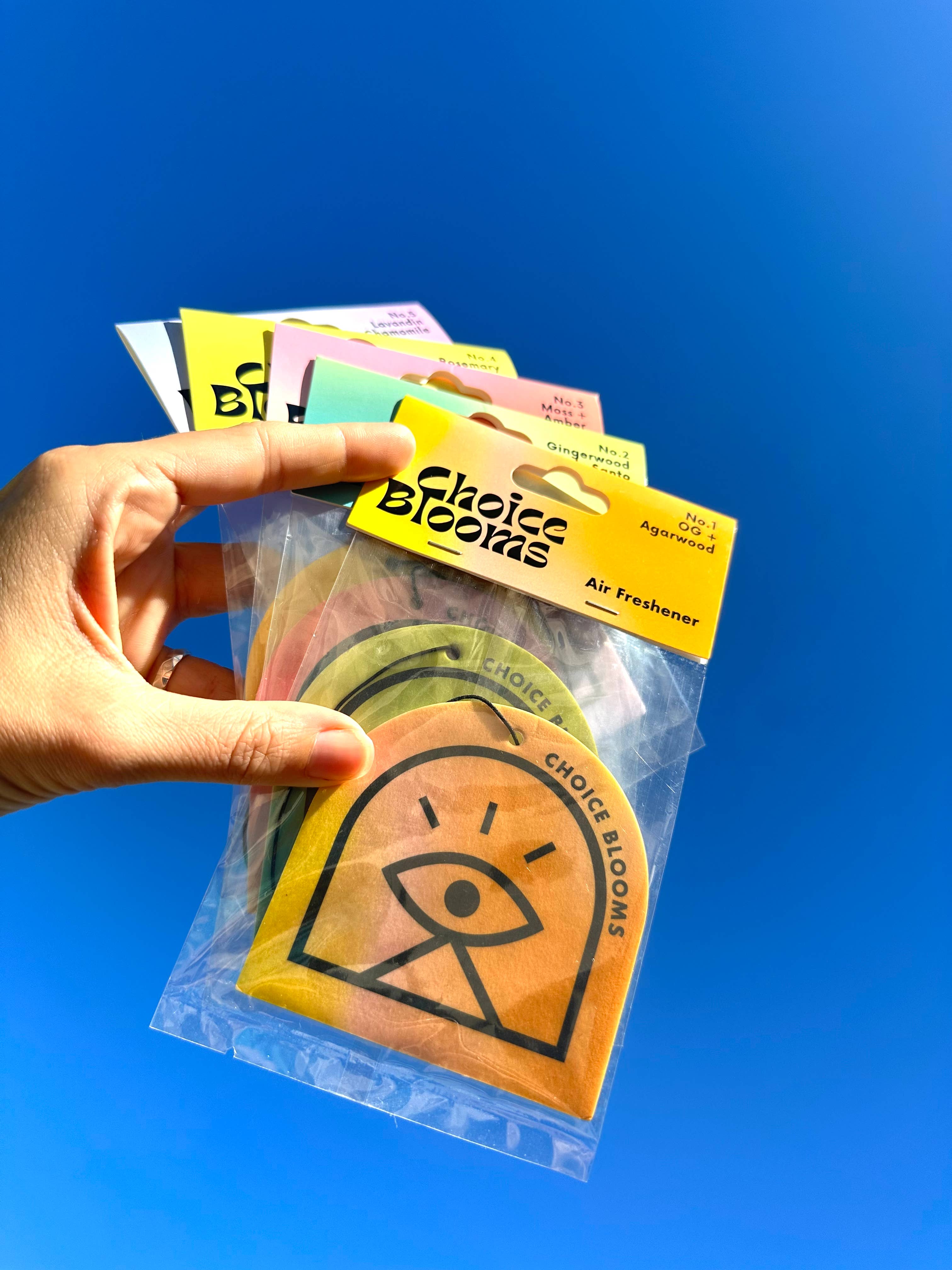 Single air freshener - Choose from our 7 signature scents made with recycled paperboard + fine fragrance + essential oils. Non-toxic phthalate and paraben-free. Meant for hanging on the rearview mirror of your automobile, and are also suitable in other small spaces like bathrooms, closets, and more. Each car fragrance lasts 2-3 weeks depending on use and conditions it is hanging in. Direct sunlight and high heat can make your freshener color fade and its scent strength and longevity span shorter. Avoid direct contact with textiles and surfaces. To store in small spaces, we suggest snipping off the top of the inside barrier bag while keeping the freshener inside to avoid direct contact with textiles and surfaces.