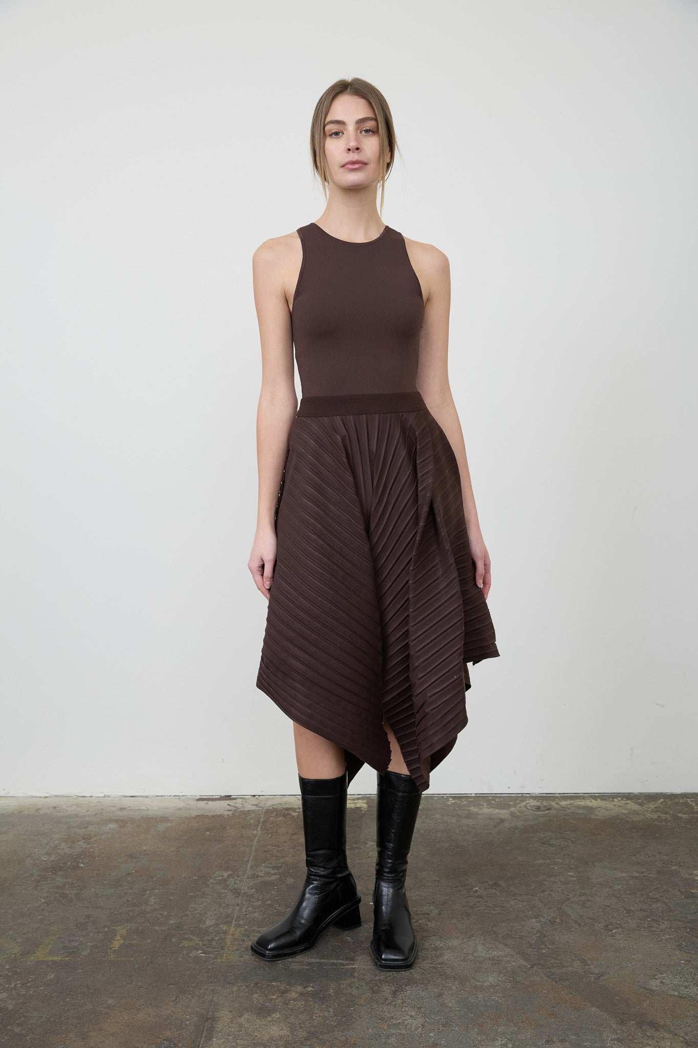 Turn heads in the Olivia Asymmetrical Dress, where cozy sweater knit meets breezy woven fabric. This playful sleeveless dress features a flattering round neckline, an elastic waistline for easy comfort, and a fun asymmetrical hem that swings with every step. The mixed media blend of rayon, nylon, and polyester adds texture and charm without the bulk—perfect for a lively day or a casual night out.
