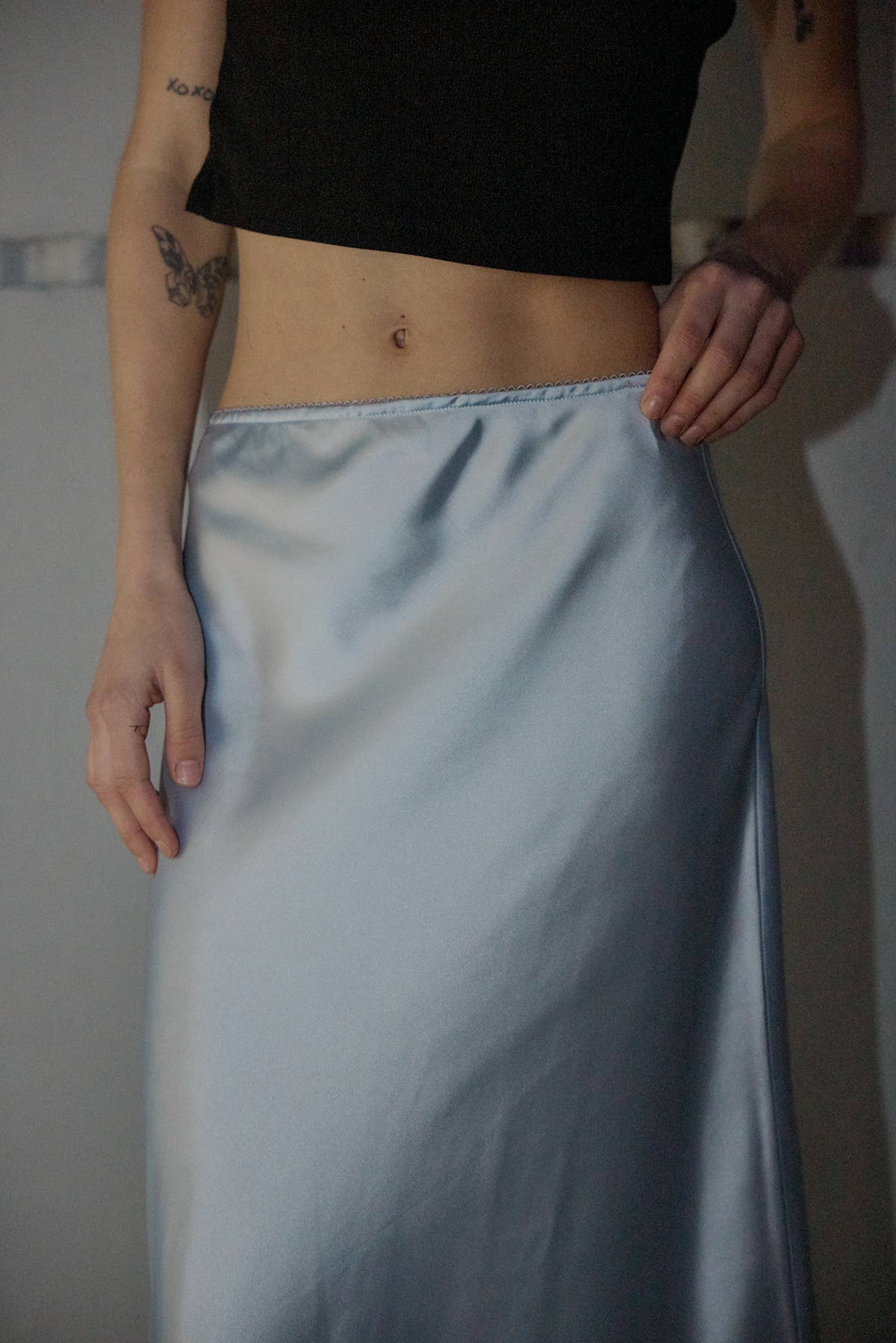 A chic satin midi skirt featuring delicate lace panel details and a subtle mermaid silhouette. Designed with a smooth elastic waistband for comfort and a fluid drape that moves beautifully. The mix of satin sheen and lace texture adds a touch of feminine sophistication — perfect for pairing with knits, blouses, or heels for an elevated look.