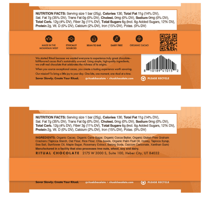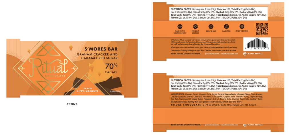 All the flavor of a classic campfire treat with no fire required. This mini bar captures the essence of s’mores with caramelized sugar for a toasty marshmallow taste and a sprinkle of crunchy graham cracker crumb on top. Perfect for your next adventure when there’s no room to pack all the fixings but you still crave that nostalgic trio of graham cracker, chocolate, and marshmallow. Size: 0.88oz (25g), 1 serving per mini bar Ingredients: See nutrition facts Allergens: May contain traces of Peanuts, Tree Nuts & Wheat.