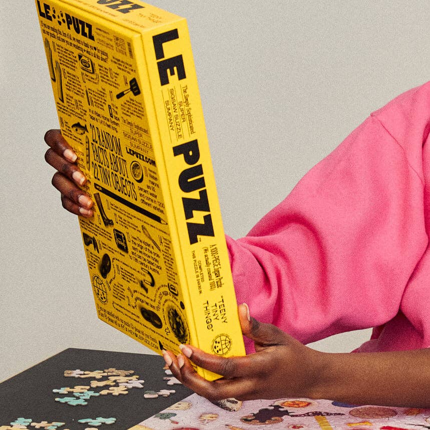 Teeny Tiny Things depicts a sprawling arrangement of miniature objects from our collection. Bananas not for scale! As we like to say, this puzzle of tiny things is not recommended for tiny tables.