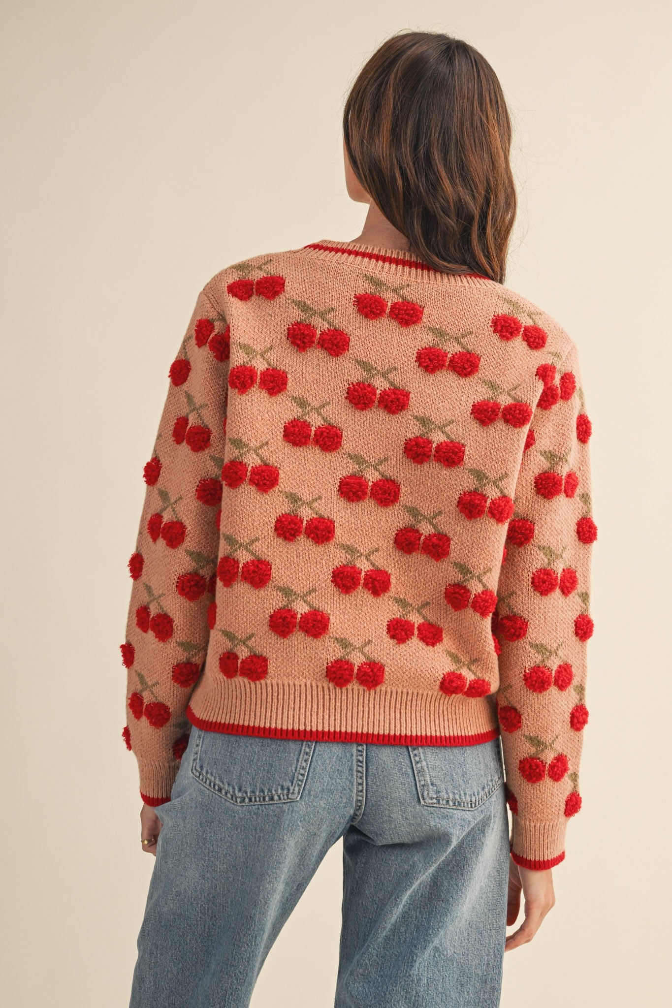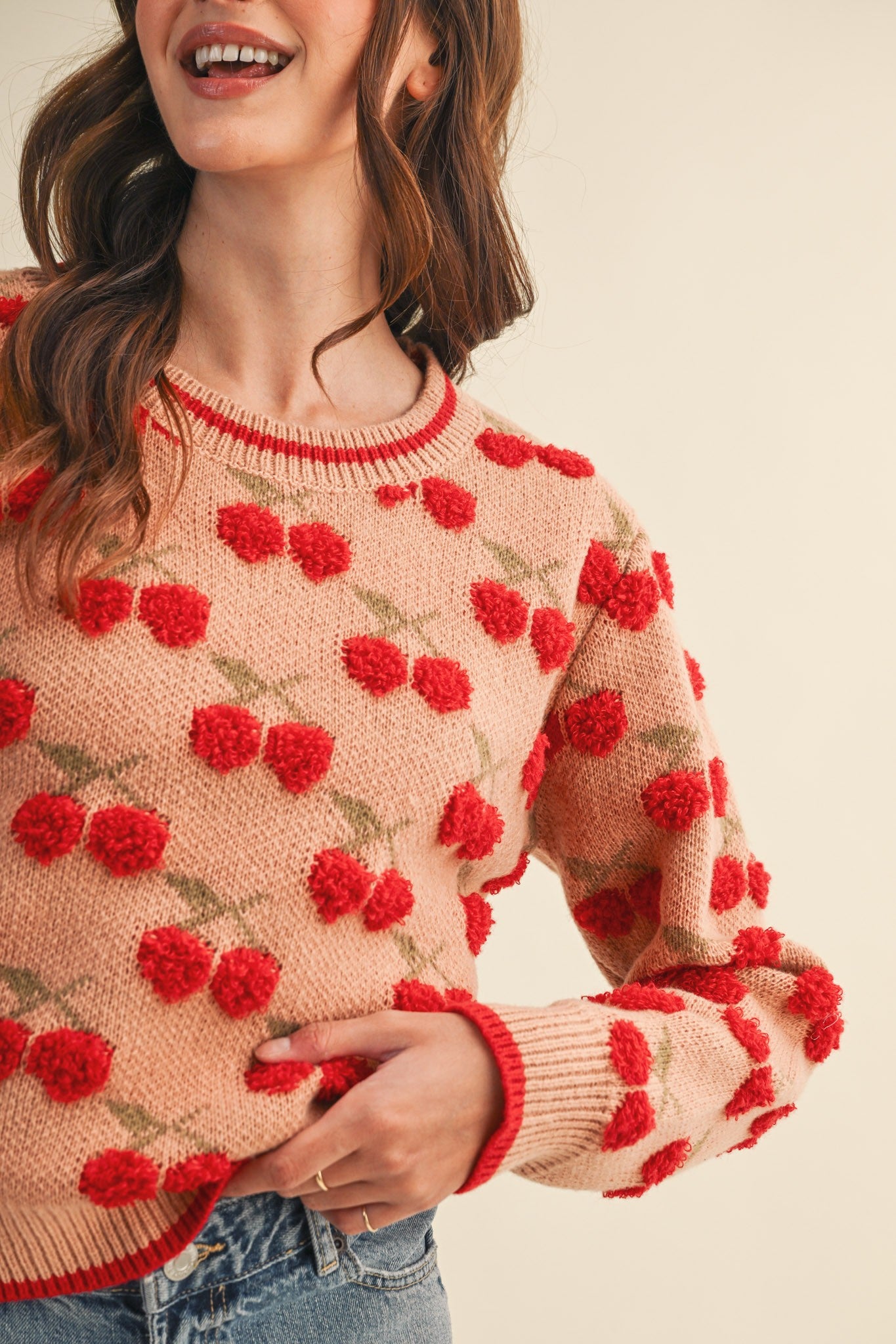 Cerise Fuzzy Cherry Sweater